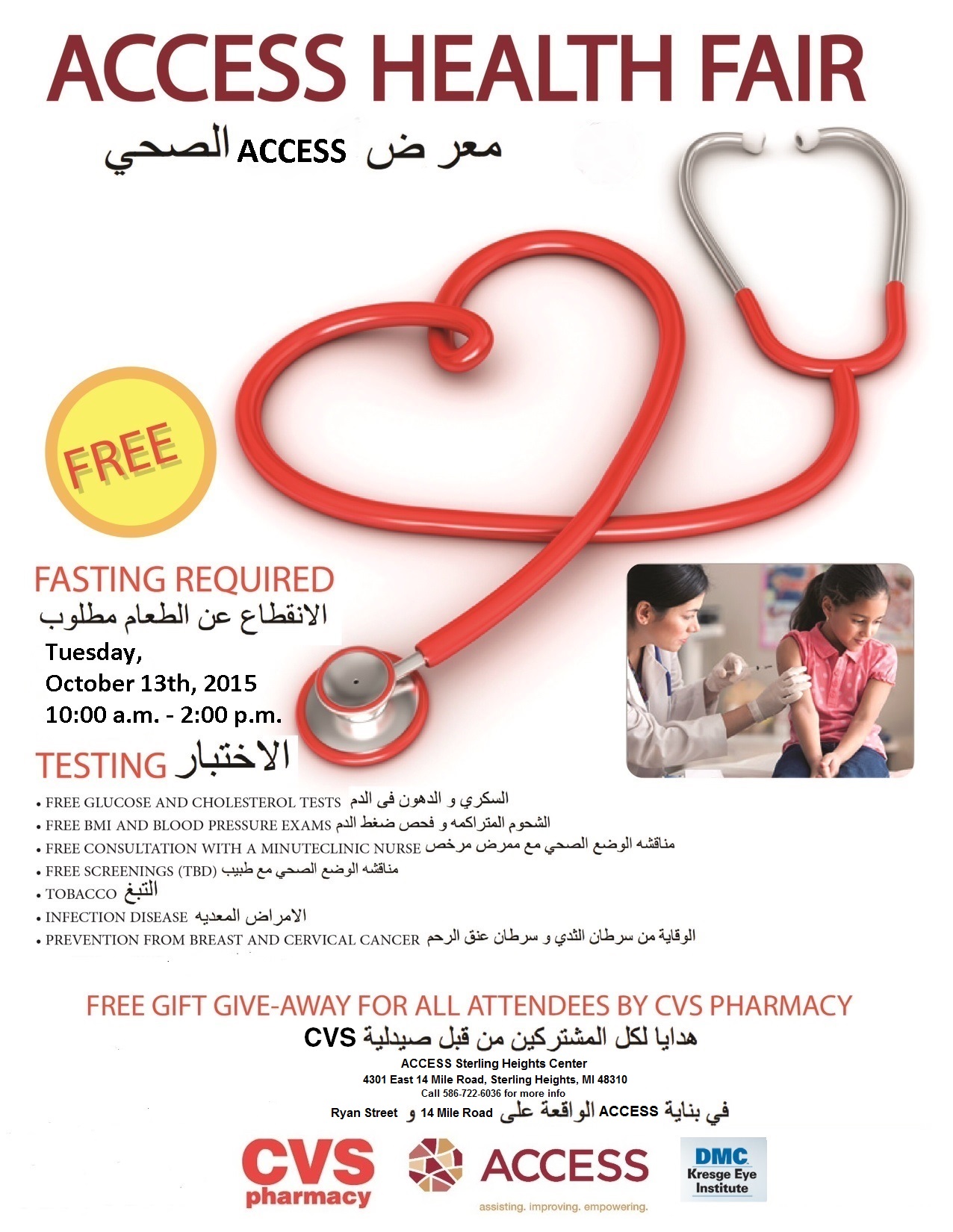 STERLING HEIGHTS—The ACCESS Community Health and Research Center (CHRC), in collaboration with CVS and Kresge Eye Institute, will hold a public health fair that will offer no-cost screenings, information and resources regarding preventive measures for maintaining a healthy lifestyle.