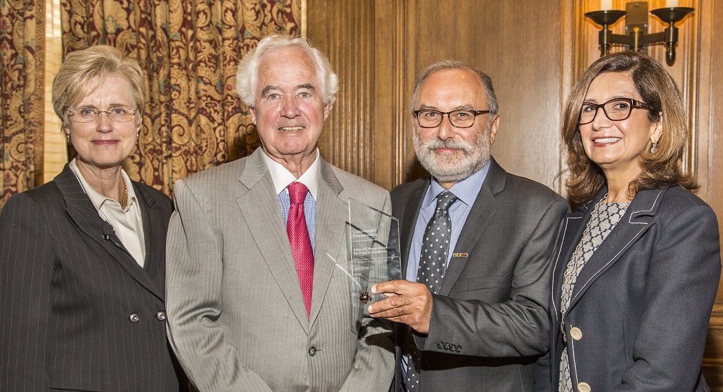 [Photo: (Left to right): Mariam C. Noland, President of the Community Foundation for Southeast Michigan and James B. Nicholson, Board Chair, with Hassan Jabber, Executive Director and Rasha Demashkieh, Board President, of ACCESS. ACCESS is the 2016 winner of the Richard F. Huegli Award for Program Excellence.]